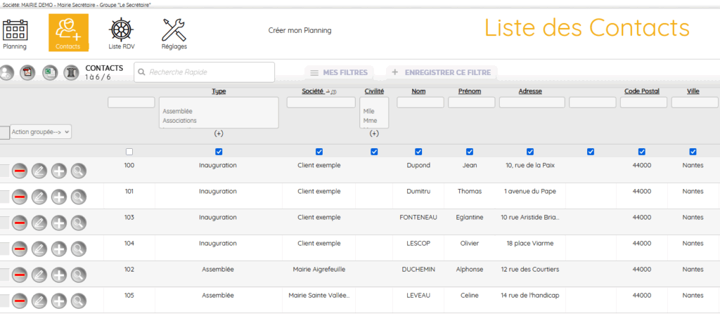 Chaque champ permet de créer une colonne dans le module des contacts et chaque colonne permettra un tri et/ou un filtre des variables. Par exemple, je souhaite exporter (en Pdf ou Excel) la liste de mes clients habitant Paris ou Nantes.